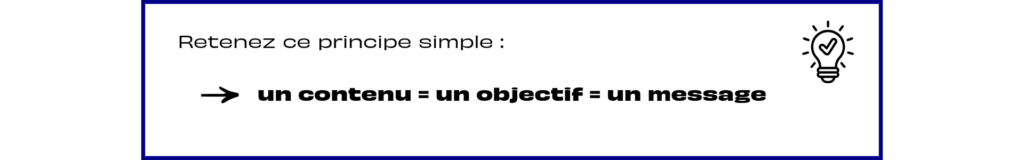 En ciblant un seul message percutant par contenu, vous augmentez non seulement la mémorabilité de votre propos, mais vous maximisez également les chances d’un engagement réel et ciblé.