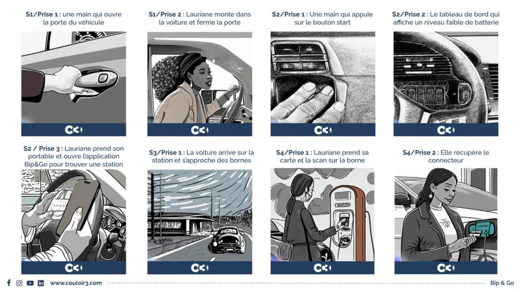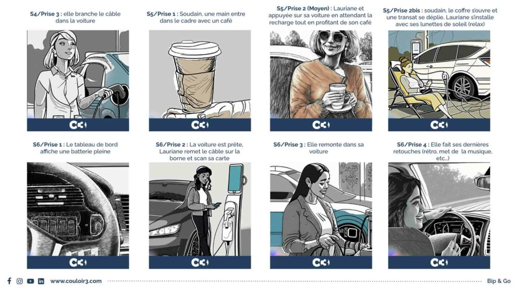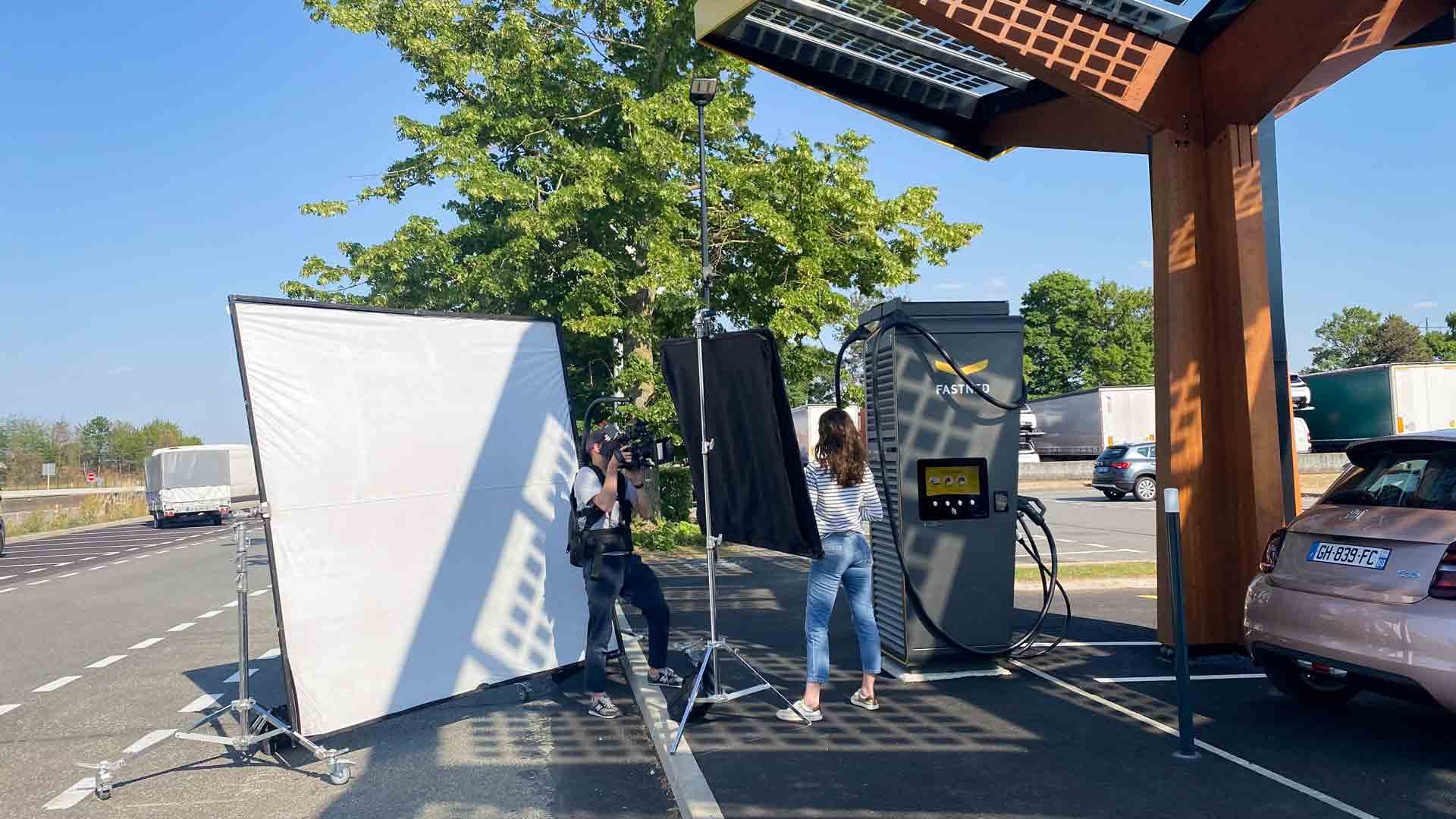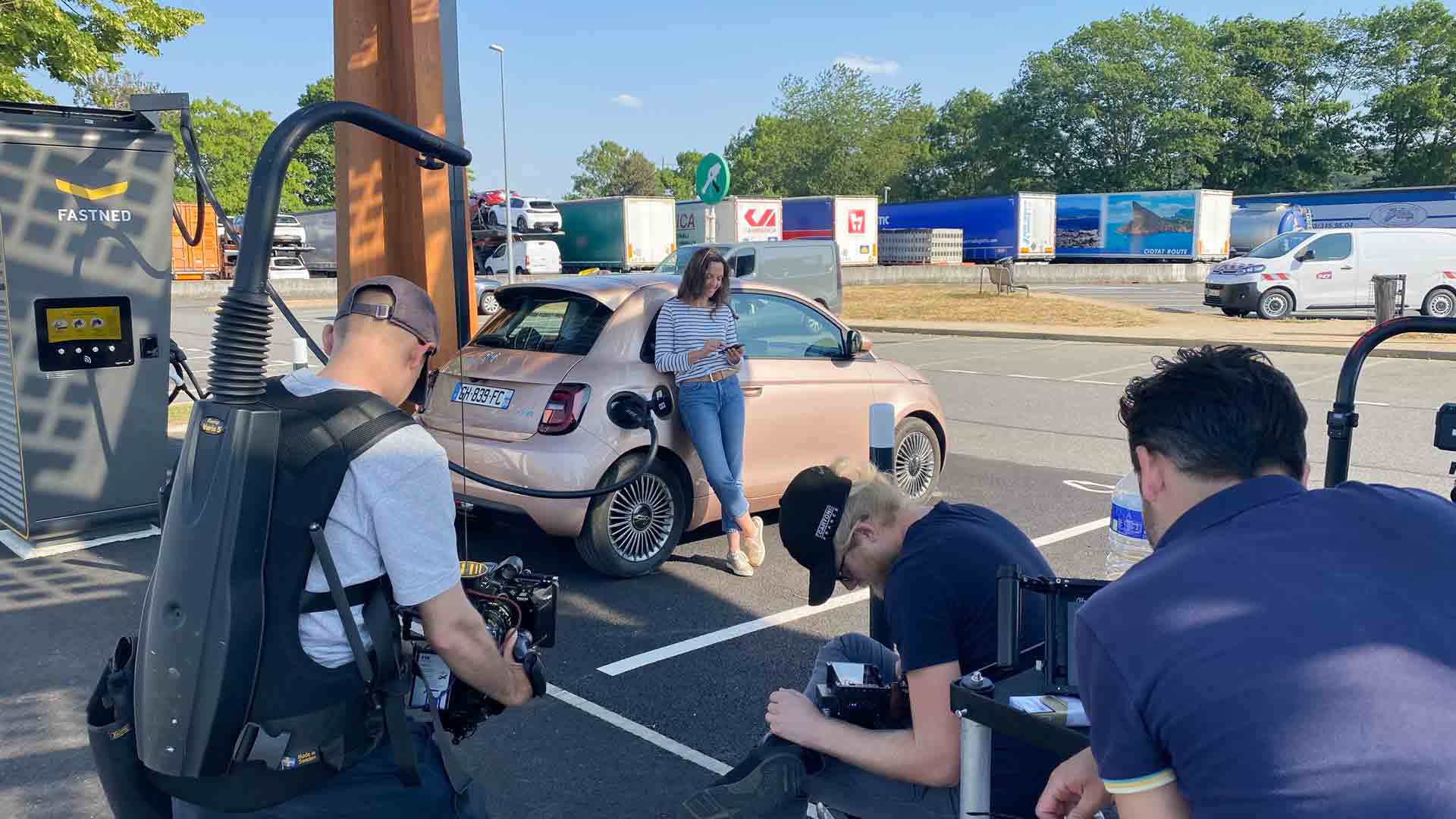 Le tournage s’est articulé autour de mises en scène précises, illustrant l’utilisation de l’application dans divers contextes (recharge, parking, trajet, station-service…).