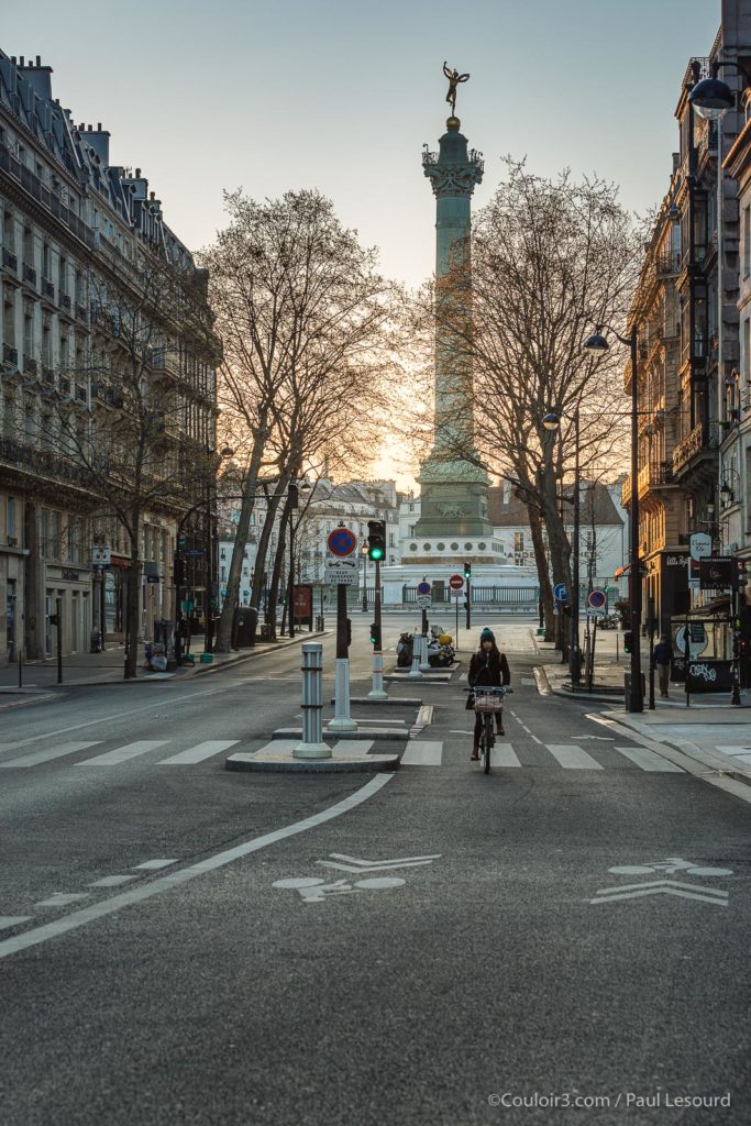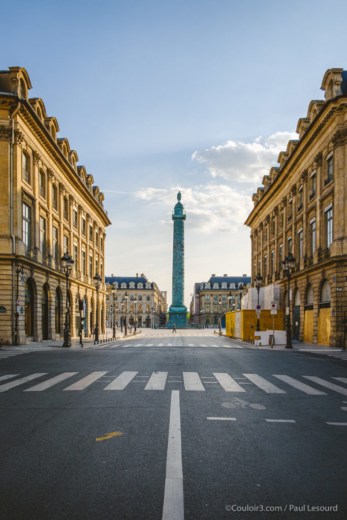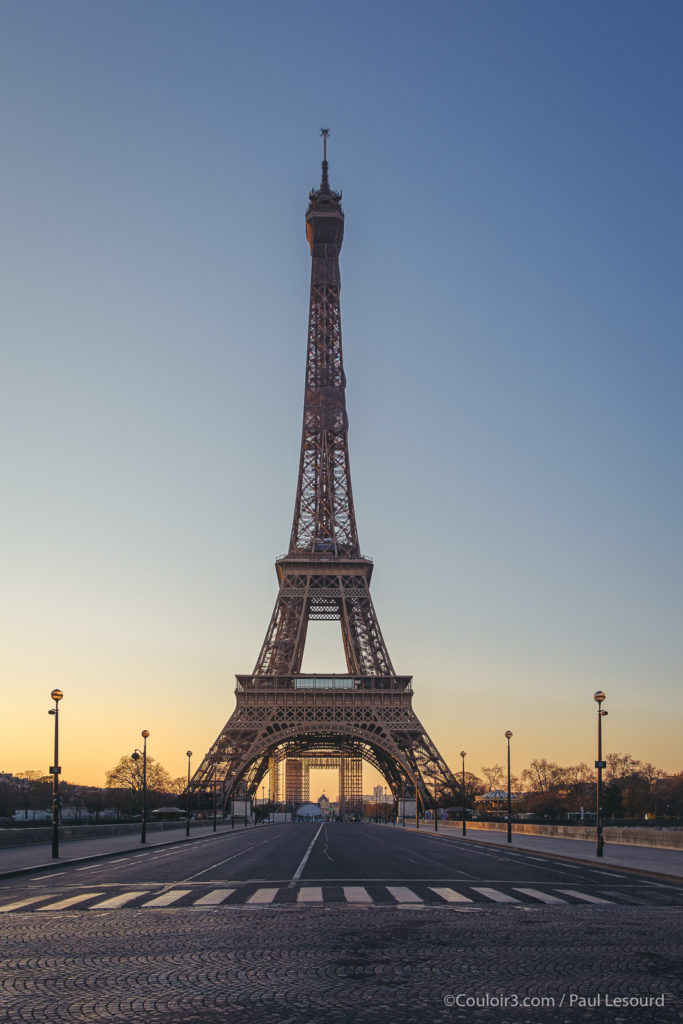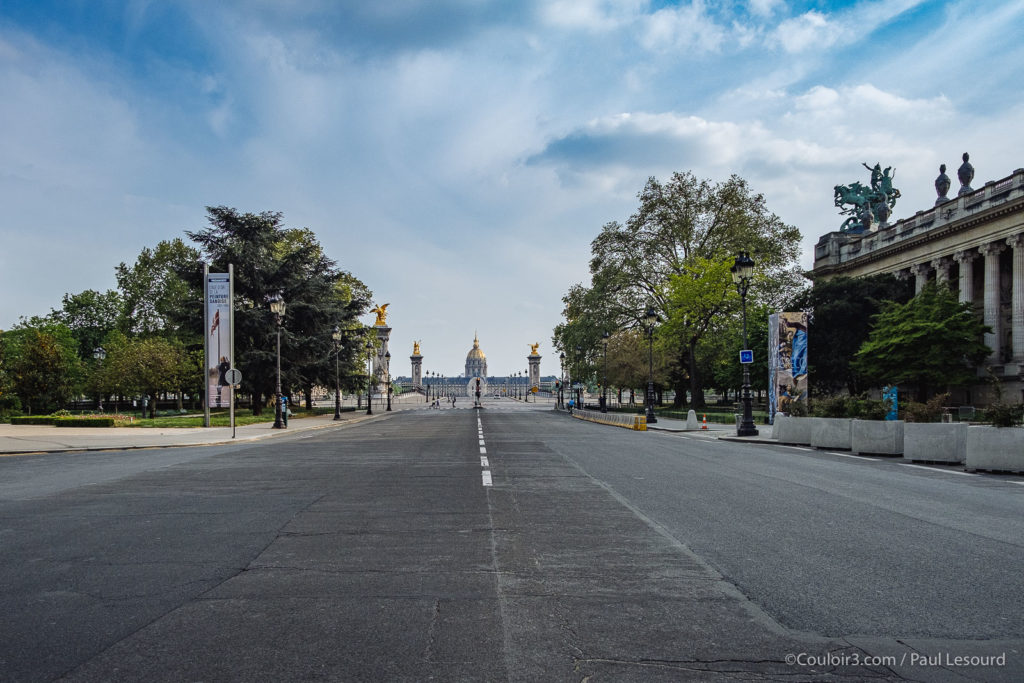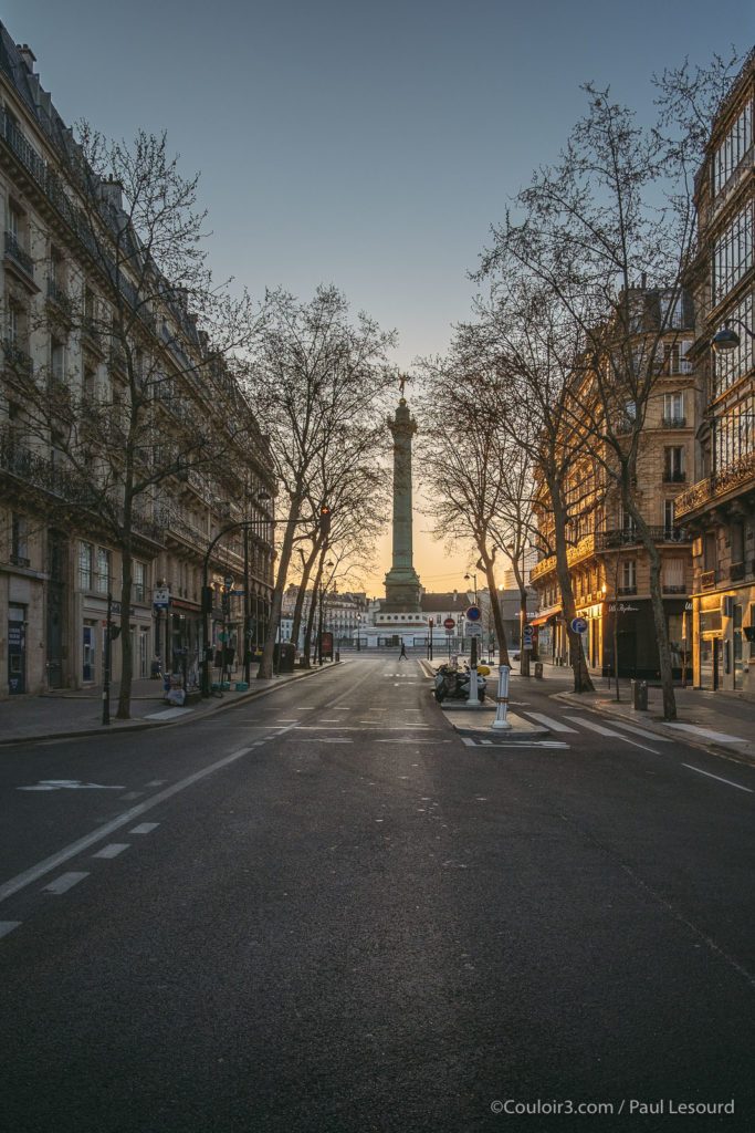 Paul Lesourd, Fondateur de Couloir 3, a eu la chance de pouvoir assister à ce spectacle aussi irréel que surprenant, voire même poétique. À plusieurs reprises depuis le début du confinement et en respectant tous les gestes barrières, Paul a donc réalisé ce travail photographique et le constat est sans appel : un Paris vide, dépeuplé de ses habitants, de son bruit et de son rythme effréné – se transformant en ville fantôme. Rarement une aussi belle lumière et un si beau ciel n’ont pu être observés.